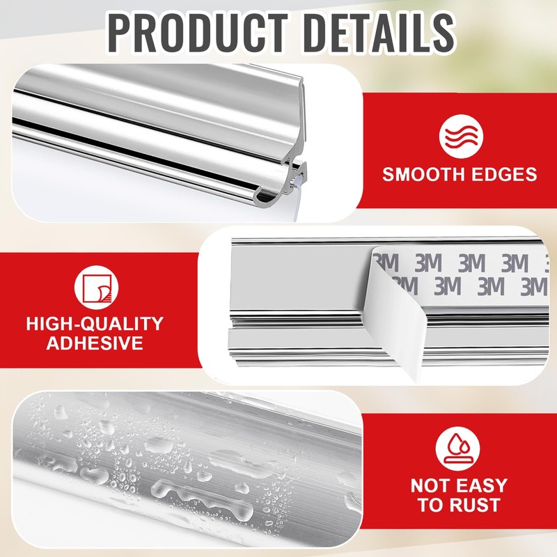 - Reliable Material: Our Chrome Framed Shower Door Replacement Drip Rail will not deform or discolor after long-term use. The material of the bottom Shower Door Bottom Sweep is soft enough to effectively reduce friction when the bathroom door slides.