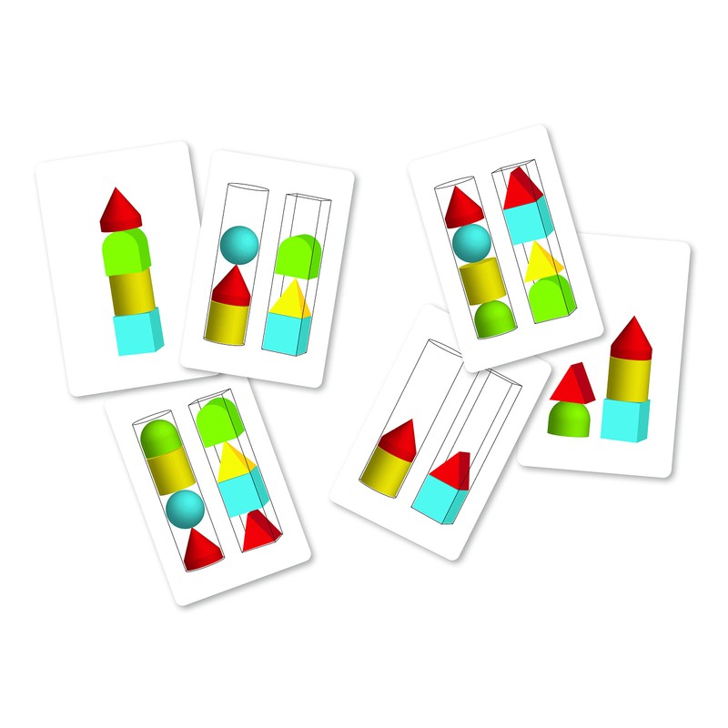 - Eight geometric shapes in different colors, made of soft material for easy grip.