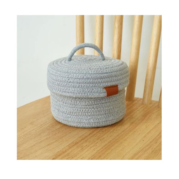 BSMstone - Cesta de almacenamiento pequeña de algodón natural, para organizar una bonita cesta para decoración del hogar, organizador de baño de cabecera (gris con tapa)
