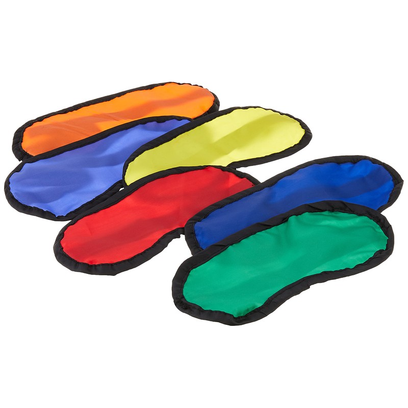 Comfortable fitting blindfolds will enhance your team building activities Polyester mask with elastic band and hook and loop fastener Each set includes 1 of each color: Blue, Green, Orange, Purple, Red and Yellow .