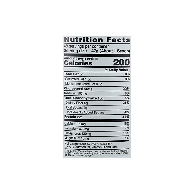 - 22G PROTEIN MATRIX : consisting of whey protein concentrate, whey protein isolate, calcium caseinate, micellar casein, milk protein isolate, and egg albumin