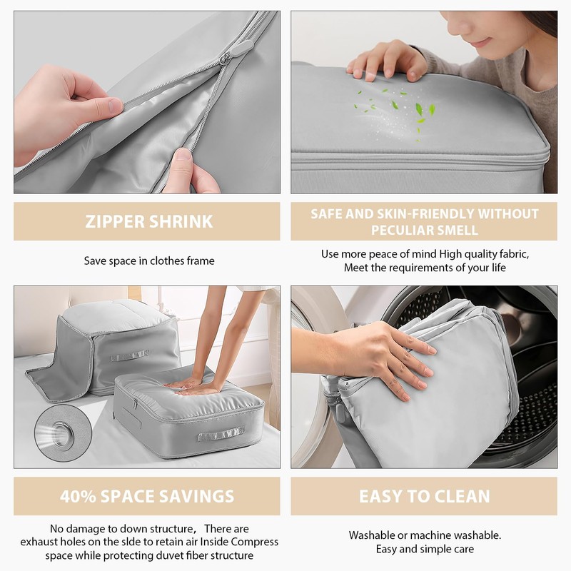 - 【Selbstkomprimierender Organizer】Verbesserte nylonmaterial bettdecken aufbewahrungstasche zur aufbewahrung. Dieser glatte und weiche stoff schützt kleidung vor falten und flecken und gewährleistet eine hohe leistung und langlebigkeit während des reisens