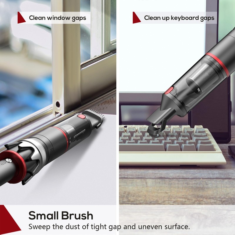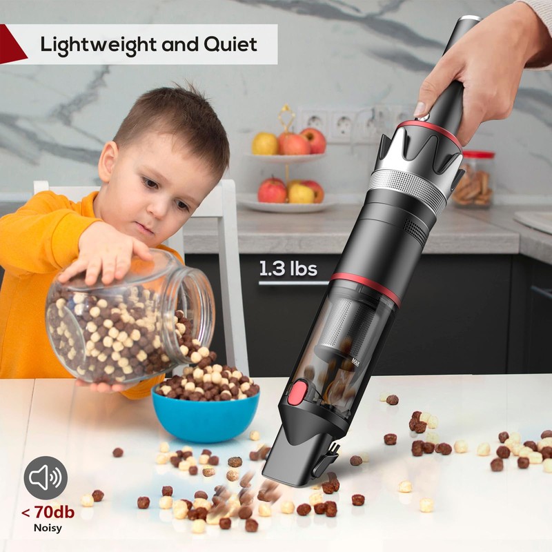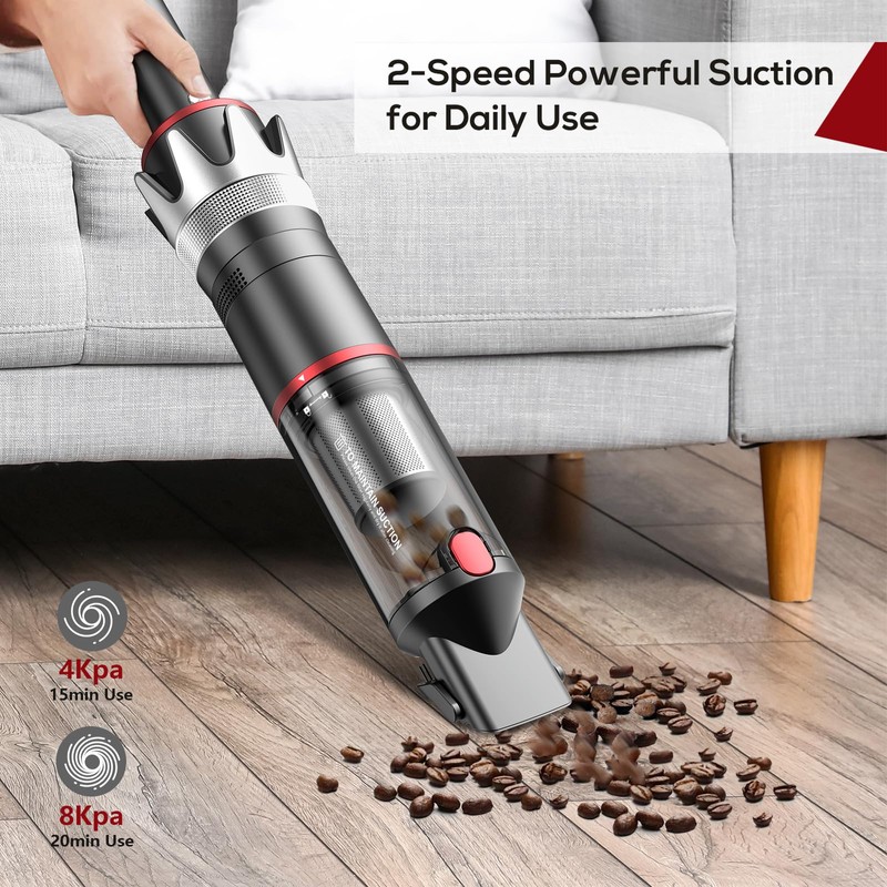 - 【A Lifesaver Handheld Vacuum for Home and Car】This handheld vacuum cordless is perfect for picking up spilled coffee beans, crumbs, and dust in deep couch gaps, carpets, windowsills, and car air vents. Whether for home use or as a car vacuum, it's an essential tool for quick and efficient cleaning.