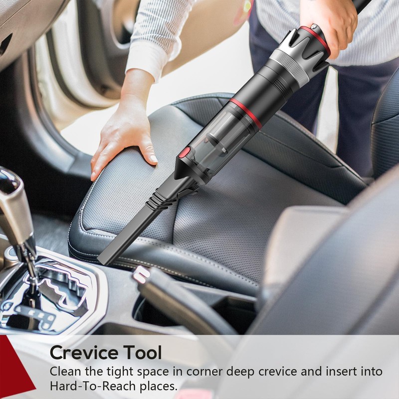 - 【4-In-1 Versatile Handheld and Car Vacuum】This handheld vacuum comes with a brush for crumbs and pet hair, a crevice tool for tight spaces, and a flat brush for delicate surfaces like keyboards. Whether used as a car vacuum or a hand held vacuum for your home, it adapts to all your cleaning needs.