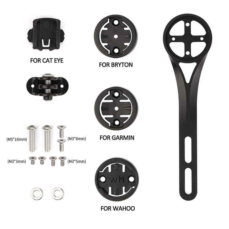 Package Contents: 3 x Plastic Adapters, 1 x Bracket Adapter, 1 x Aluminum Alloy 6061 T6 Computer Holder, 1 x Sports Camera Adapter, 8 x Screws, 2 x Screw Spacers. Compatible for Garmin Edge 20/25/130/500/510/520/520Plus/800/810/820/1000/1030 bike computer. Also compatible with Cat Eye. Note: The cat eye adapter can only be used with Garmin Edge adapter. Compatible with Wahoo Elemnt, Wahoo Elemnt Bolt, Wahoo Elemnt Mini, Bike Computer Compatible with Bryton and Cat Eye 100, 300, 310, 330, 530, 10, One. Compatible for GoPro camera and bicycle front lights.