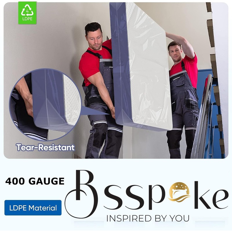BSSPOKE INSPIRED BY YOU BSSPOKE Heavy Duty 400 Gauge Mattress Cover for Moving C Double Mattress Bags for Storage C Easy Fit, Tear Resistant, Waterproof Mattress Storage Bag for Ultimate 360 Protection (4ft6 - Double)