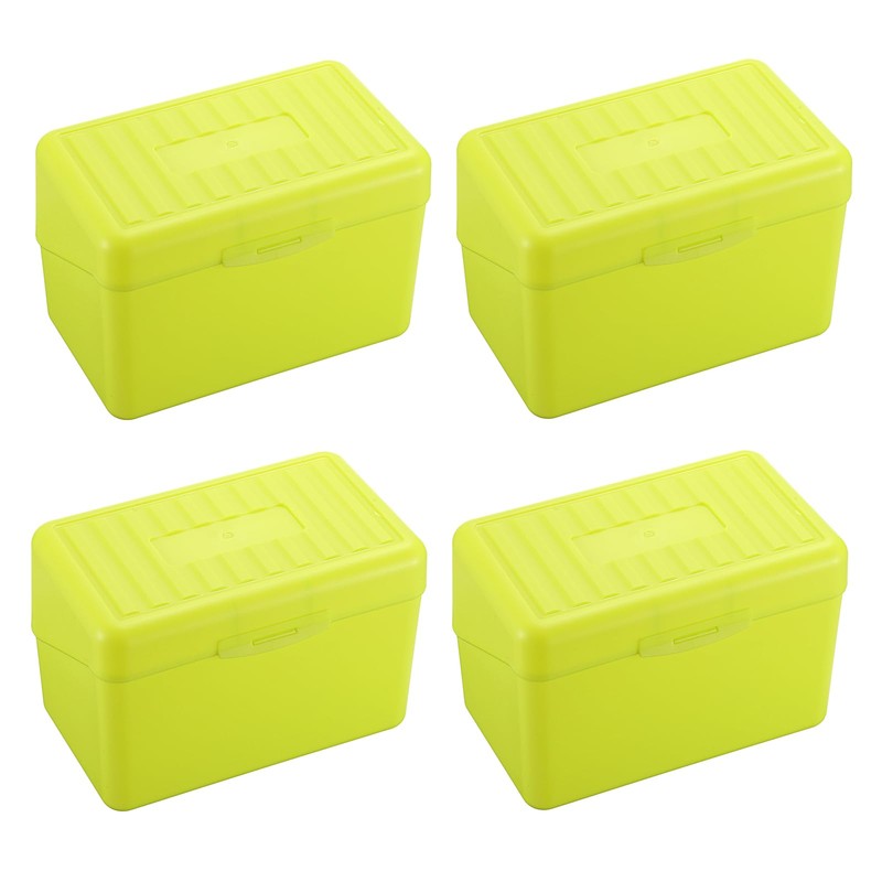 BSTKEY 4 x 6 inch Plastic Index Card Holder Recipe Card Box, Set of 4 Flash Card Case Note Card Box Storage Organizer for 10 x 15cm Index Card Flashcard Recipe, Yellow (No Cards)