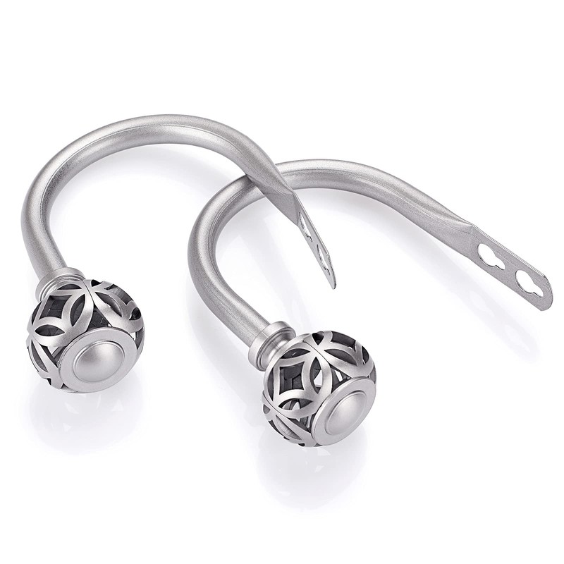 BSTKEY Set of 2 Coin Lantern Curtain Hooks Drapery Holdbacks, Decorative Window Curtain Holder Hook Hollow Curtain Tiebacks, Silver