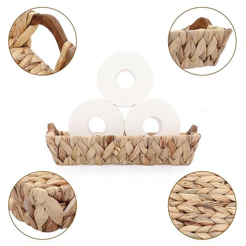 Basket holder has perfect size to place on the toilet. Except for putting roll paper, but also aromatherapy bottle and green plants to freshen the air.