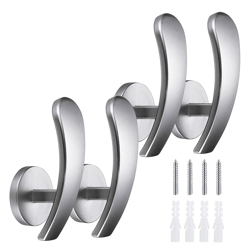 BSTKEY Set of 4 Aluminum Alloy Curtain Hooks, Decorative Wall Mounted Window Curtain Drapery Tiebacks Holdbacks, Curtain Holder with Screws, Silver