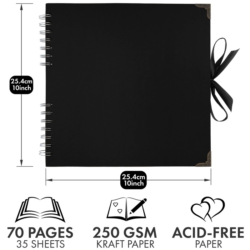 - Our 10 x 10 Inches memory book is durable and suitable for long term storage for you and your loved ones beautiful memories. It has 35 sheets, 70 pages of 250gsm high quality thick Kraft paper, designed with ribbon closure, hard cover and corner protectors