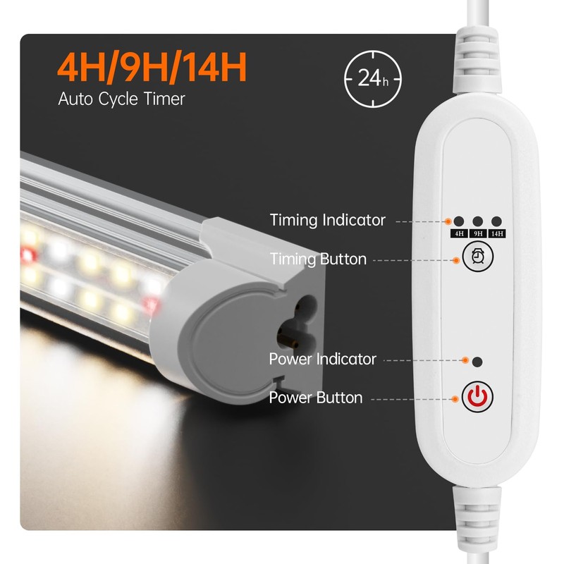 - Convenient Timer Function - The built-in timer allows you to set the grow lights to automatically turn on and off at your preferred intervals (4, 9, or 14 hours), ensuring your plants receive consistent care, whether you're on vacation or busy with work.