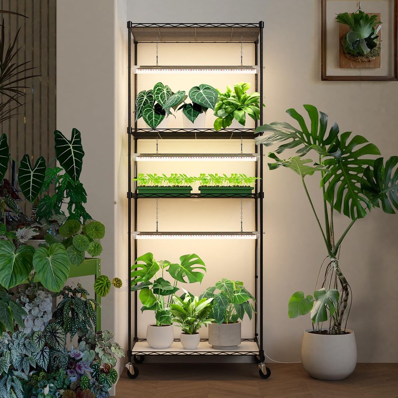 - Leak Prevention & Ample Space - The included PP pads effectively prevent water from reaching the grow lights during watering. Each wire rack provides generous space for showcasing and cultivating a variety of indoor plants, including succulents, and flowers.