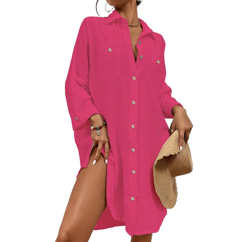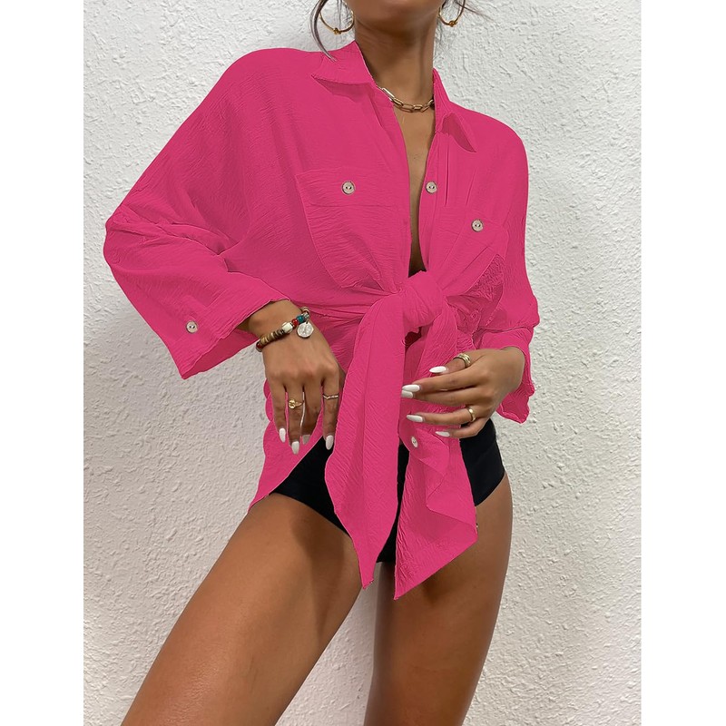 Bsubseach Bathing Suit Cover Up Women Tops Beach Shirt Button Down Pool Coverups for Swimwear Rose Red L