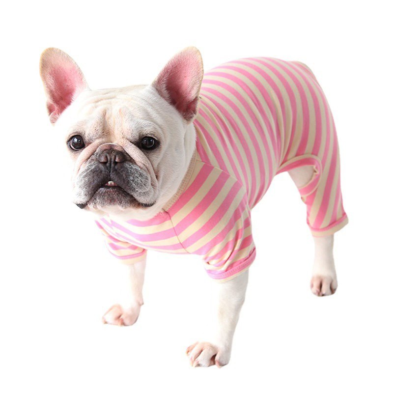 BT Bear Dog Clothes Colorful Striped Soft Cotton Pajamas Jumpsuit Bulldog Onesie Costume for Puppy Small Dogs (XS, Pink)