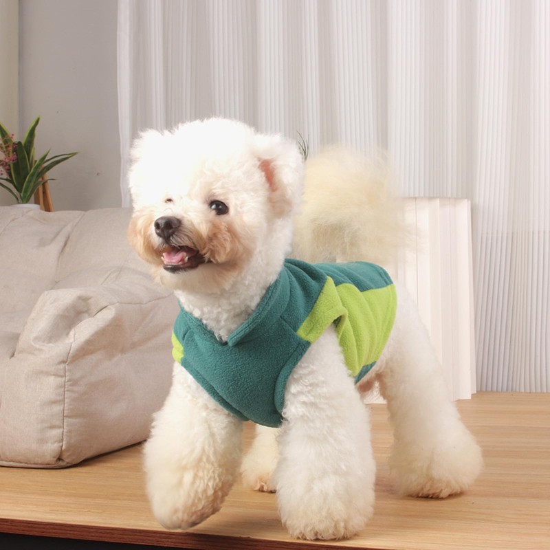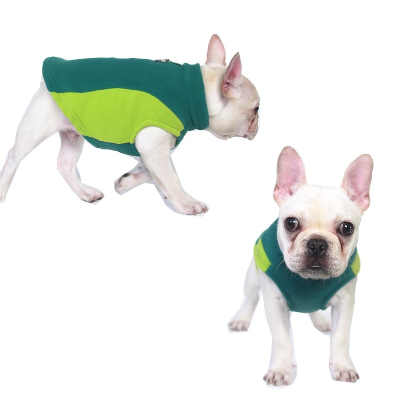 BT Bear Warme Jacken für Hunde, Colorblock-Fleeceweste, Kleidung mit D-Ring, Hunde-Wintermantel für Welpen, kleine Hunde, Grün, Größe L