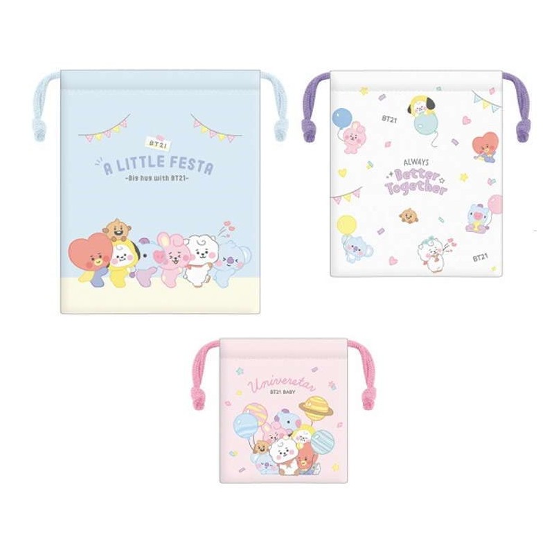 BT21 Drawstring Pouch, 3-Piece Set, LITTLE FESTA LINE FRIENDS