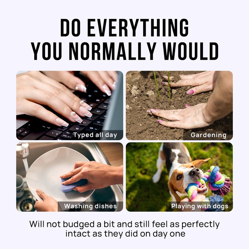 - Do Everything You Normally Would: All BTArtbox fake nails medium offer feature protective building gel finish so that you are able to do everything you normally would, such as typing, gardening, houseworking or playing with your pet. They will not budged a bit and still feel as perfectly intact as they did on day one