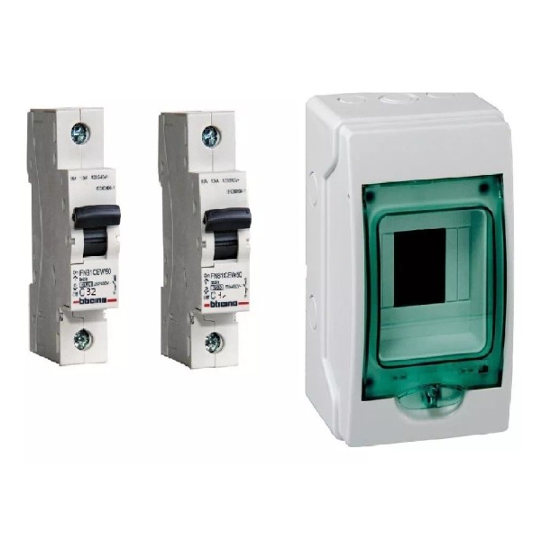 BTCINO / KAEDRA Kit Centro De Carga + 2 Interruptor Termomagnetico ( Break )