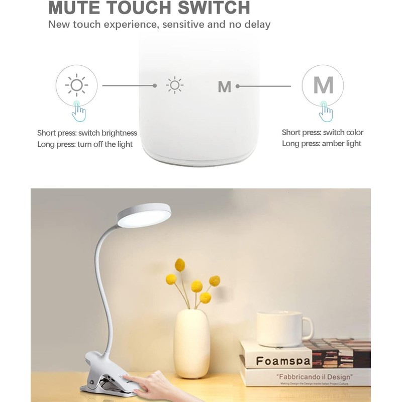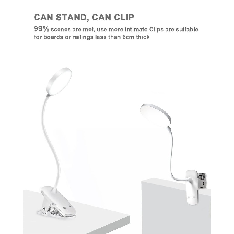 Bteng Bteng Leselampe Bett, 36 LED Klemmlampe mit Touch Dimmbar 6 Farben und 5 Helligkeit Augenschutz Klemmleuchte Kinder USB Wiederaufladbar Nachttischlampe Klemmbar fr Studieren Arbeiten, Wei?