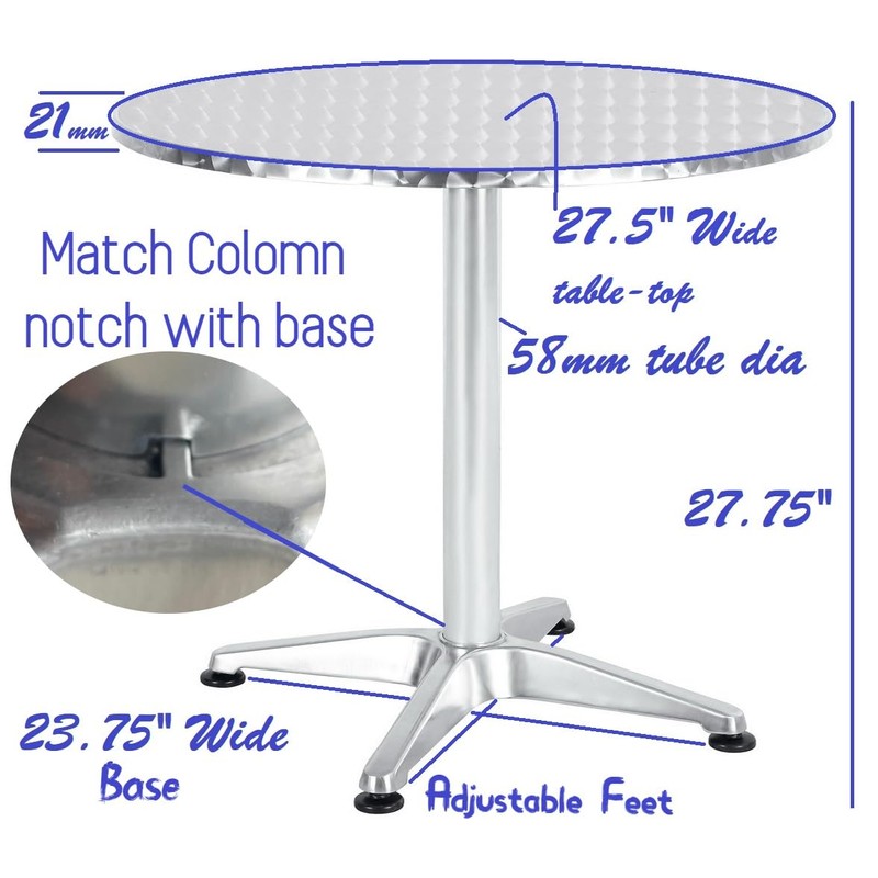 - Crafted with a high-quality aluminum column and base, this table is lightweight yet sturdy, offering long-lasting durability in any setting; ripple stainless steel top is easy to clean and resists scratches and marks; non-slip feet provide floor protection and stability; ideal for casual dining, coffee, cocktails, or reading; its outdoor patio aesthetic sets a relaxed, cozy tone in both home and business environments.