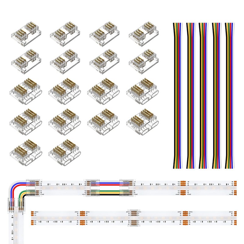 - Packungsinhalt: 10 x transparente Steckverbinder von Board zu Draht, 8 x transparente Steckverbinder Board zu Board, 5 x 15cm lange 24AWG-Verl?ngerungskabel. Bitte beachten Sie: Der Stecker ist unidirektional und muss vor dem Herausziehen der LED-Leiste herausgebrochen werden. (Dieses Produkt umfasst nicht die Lichtleiste, das Steuerger?t oder das Netzteil oder LED-Streifen).