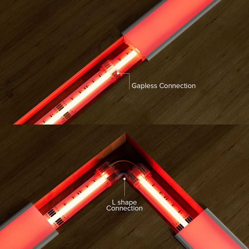 - Kostengnstig. Die Leiterplattenanschlsse sowie die transparenten Stecker blockieren den LED-Streifen nicht und erm?glichen eine nahtlose Verbindung, so dass der Streifen sicher an seinem Platz gehalten wird, ohne schlechten Kontakt oder unterbrochene Verbindungen. Das macht es einfacher denn je, farbenfrohe Lichteffekte zu genie?en.