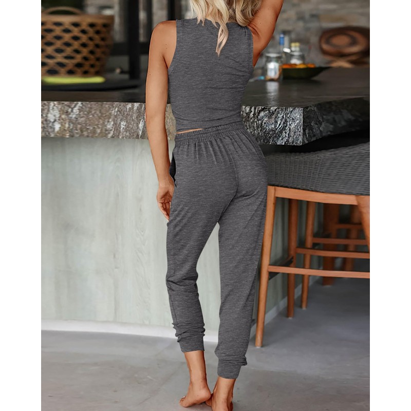 - DESIGNS: The Womens Sleeveless Tops Is With Crew Neck Crop Top Design, Match With Elastic Drawstring Pockets Wide Leg Pants And Long Cardigan As The 3 Piece Lounge Sets. It Combine The Casual And Modern Styles For Daily Wearing