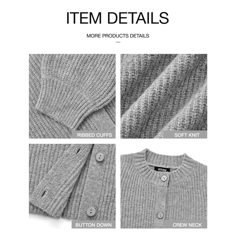 BTFBM Women's Chunky Knit Fall Cardigan 2024 Winter Long Sleeve Button Down Soft Loose Cropped Sweater Outerwear(Grey, Medium)