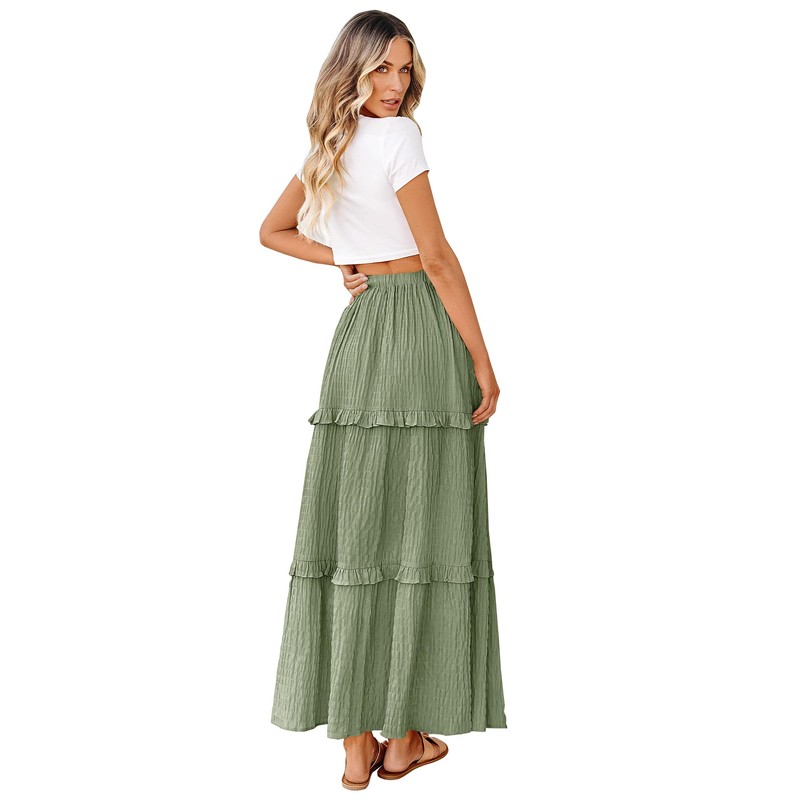 - Summer Long Skirts - The Boho A-Line Flowy Swing Tiered Maxi Long Skirt Featured With Decorative Drawstrings, Elastic High Waist, Solid Color, Ruffles Tiered Flowy Skirt, Which Makes The Summer Skirts Simple But Trendy
