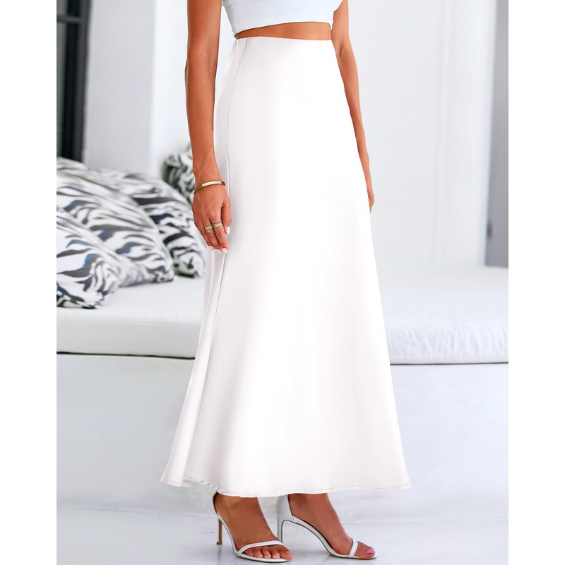 BTFBM Womens Summer Fall Skirt 2025 Silk Elegant High Waist Cocktail Party Wedding Mermaid Satin Maxi Skirts(Solid White, Small)