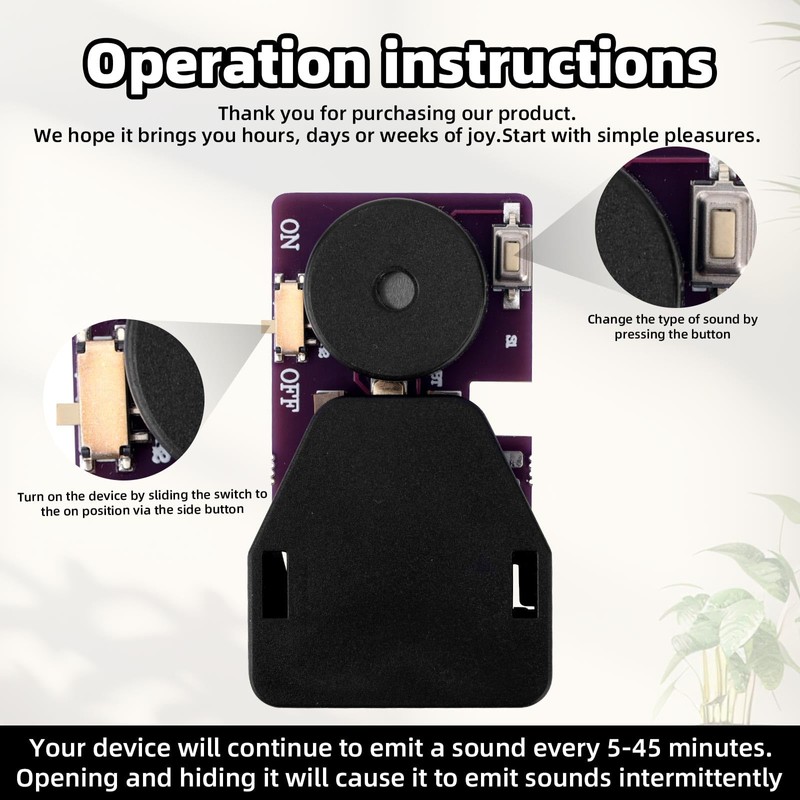 • Fun Experience: Each cricket noise device features 16 different annoying sounds like cricket chirps, bird calls, alarm sounds, buzzers, and more. The remote control version can switch the sound remotely. After selecting the noise, you can randomly select 4 playback modes (5/10/20 minutes/automatic).