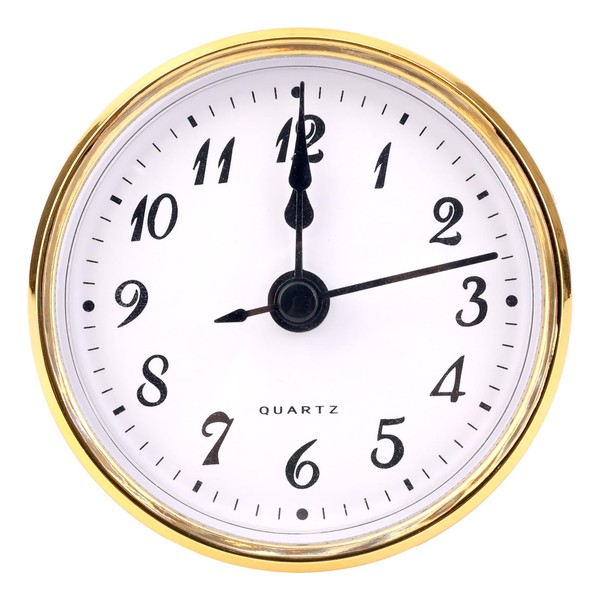 BTFO Round Quartz Clock Insert, 2.8 Inch Mini Quartz Movement Miniature Clock Face Arabic Numerals Insert Replacement (Gold Trim)