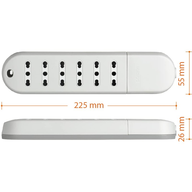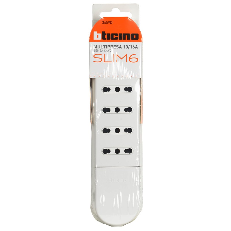 Bticino Slim Power Strip without Cable with 6 Double Sockets 10/16 A, Compatible with Small 10 A and Large 16 A Plugs, 3500 W, White