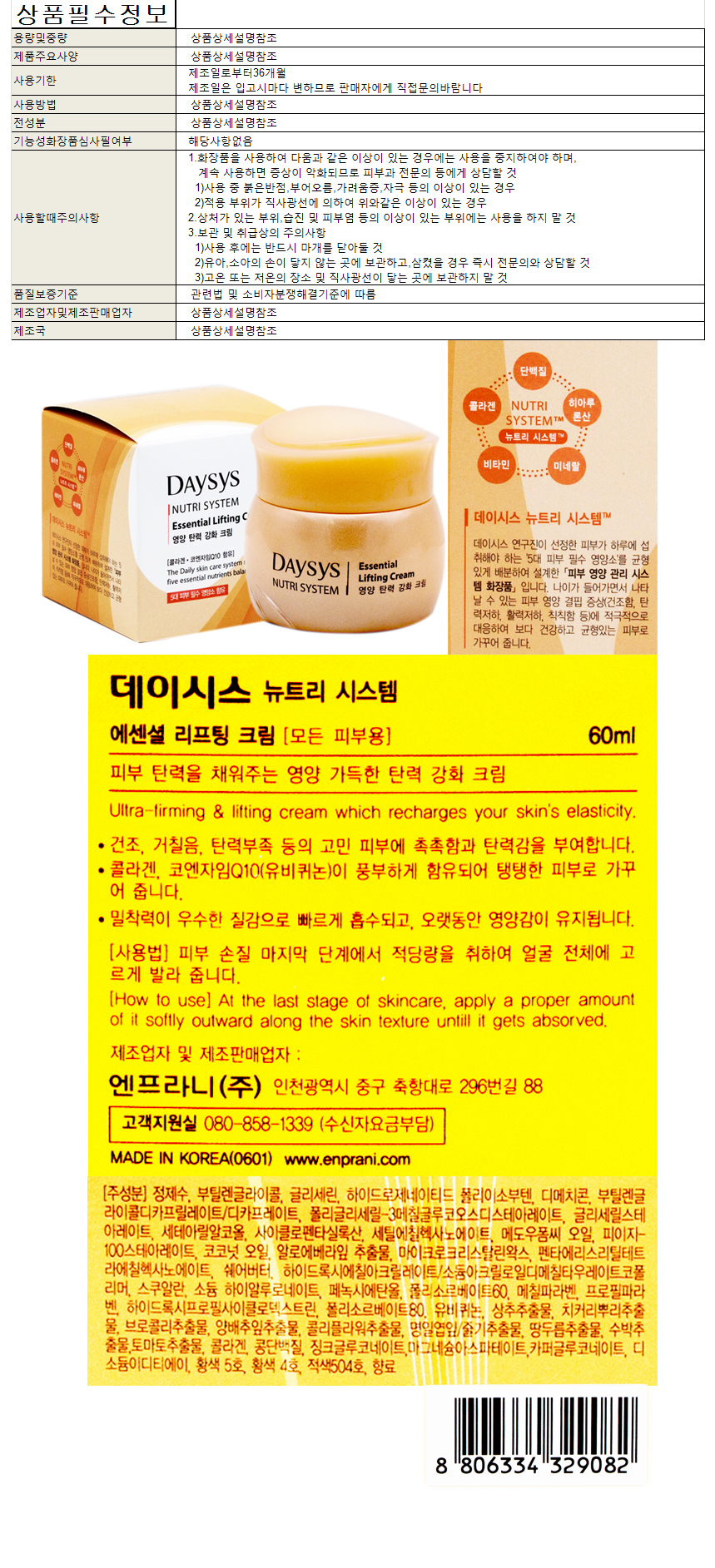 (제이큐)BTM 엔프라니 데이시스 에센셜 크림 60ml