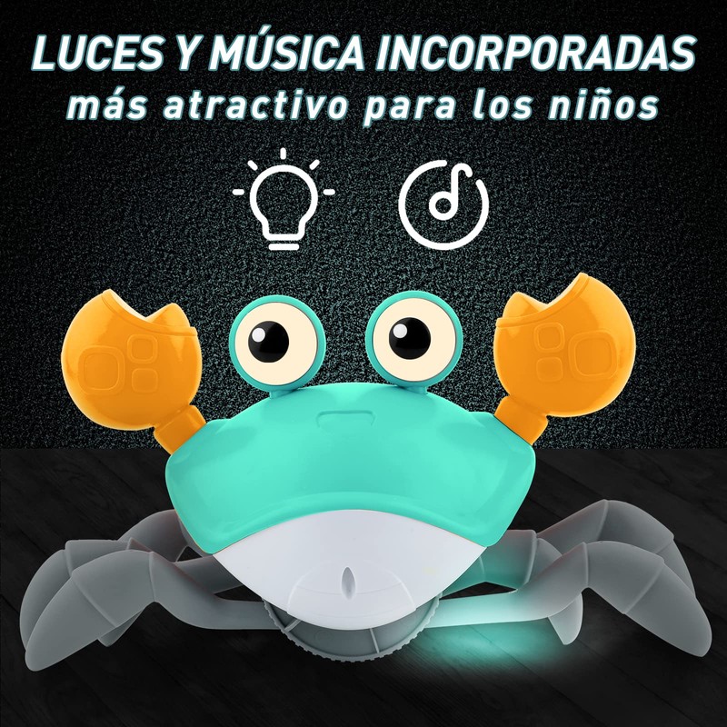 - 【Juguetes musicales de cangrejo】: los juguetes inteligentes de cangrejo pueden detectar obstáculos a través de sensores integrados y luego evitarlos automáticamente. Cuando estaba a punto de encontrarse con el cangrejo de juguete, tomaba la iniciativa para esquivarlo e ir en la dirección opuesta. La música divertida y las luces intermitentes atraen la atención de los niños y los mantienen persiguiendo y jugando felices.