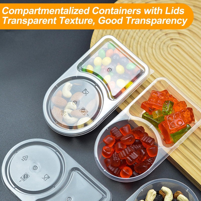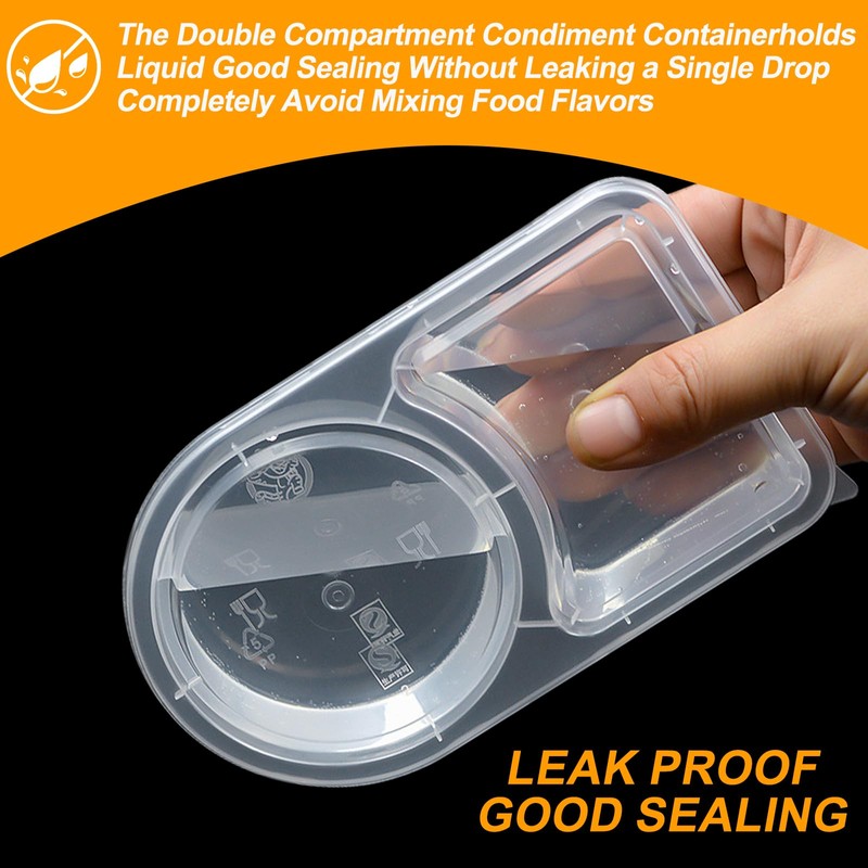 Condiment Container with Lid, Disposable Double Compartment Snack Container