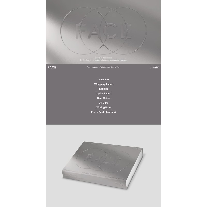 BTS Jimin FACE 1st Solo Album Weverse Albums Platform Version Package+1p Wrapping Paper+28p Booklet+1p Lyrics Paper+1p User Guide+1p QR Card+1ea Writing Note+1p PhotoCard+Tracking Sealed
