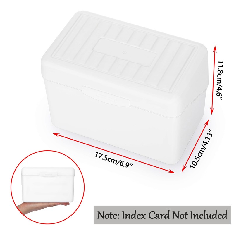 - Product Size: BTSKY plastic index card holder box measures by 6.9" x 4.13"x 4.6"/ 17.5 x 10.5 x 11.8 cm(LxWxH). Large enough to hold 4" x 6" size cards and fits at least 300 cards, which solves the problem of card storage for you.NOTE: Only card holder box included ,No Index Card Dividers.