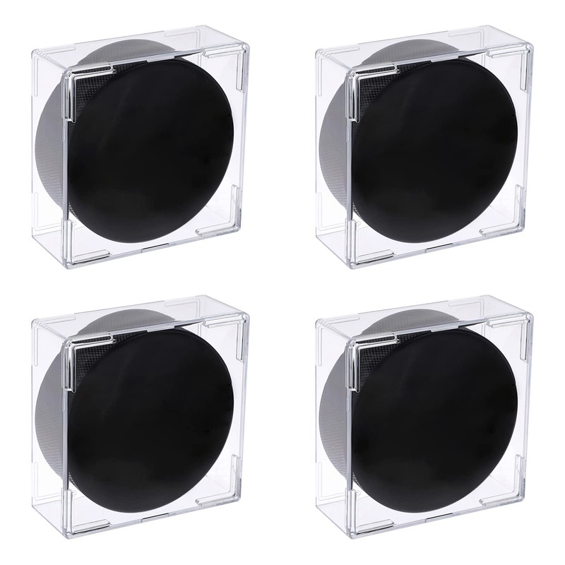 BTSKY 4 Pieces Square Clear Stackable Hockey Puck Holders - Plastic Cube, Ice Hockey Puck Box, Display Case for Memorabilia, Storage Box, Ice Hockey Holder