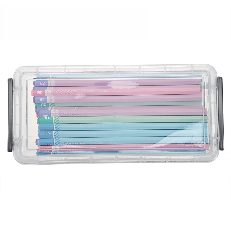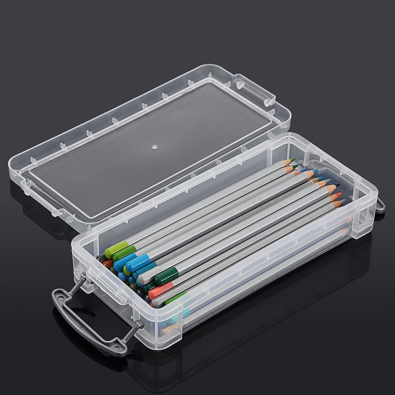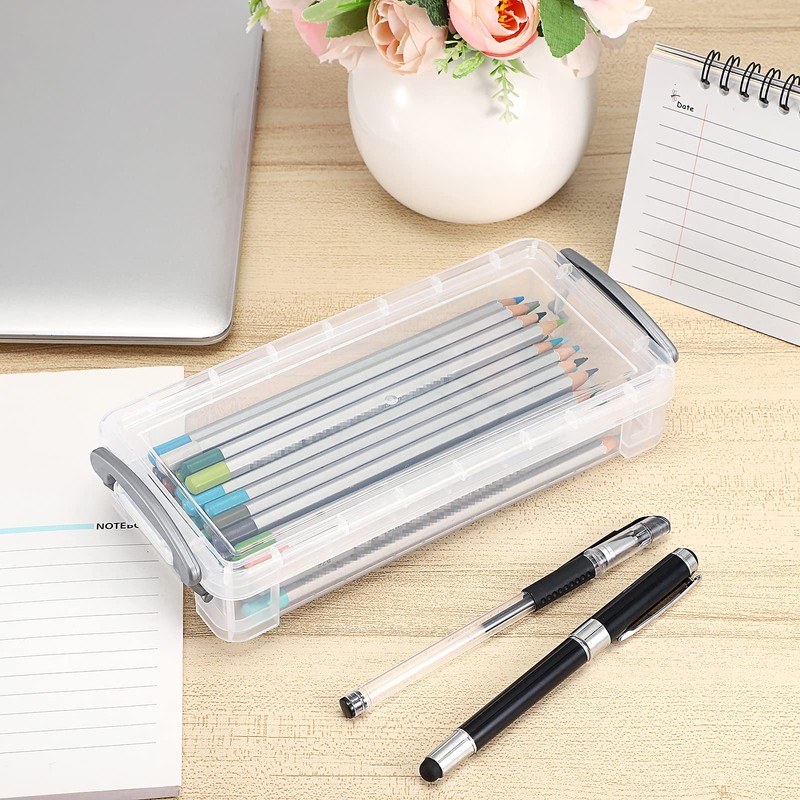 Die Kunststoff-Bleistiftbox bietet einen praktischen Platz für Stifte, Bleistifte und andere kleine Schulbedarf. Durch den durchsichtigen Deckel können Sie leicht sehen, was sich darin befindet.