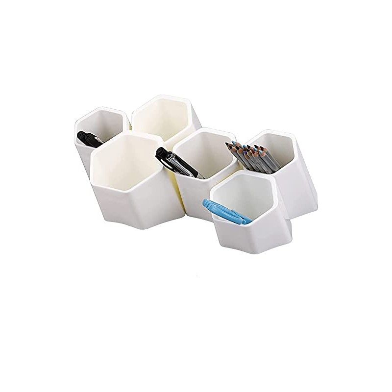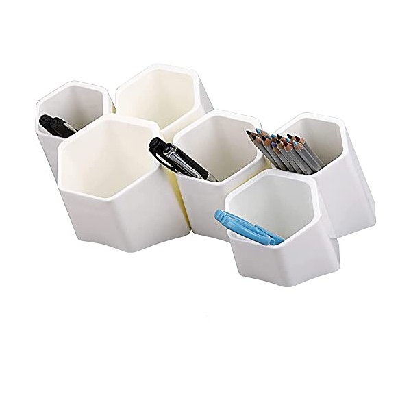BTSKY Hexagonal Creative Pen Holder, Pen Container, Brush Pot, Combination Desktop Storage Organizer Desk Decoration, Creative Hexagon Hanging Planter Holder Multifunctional Wall-Mounted Hanging Shelves(White)