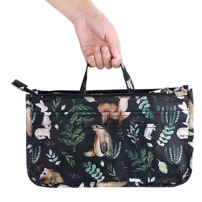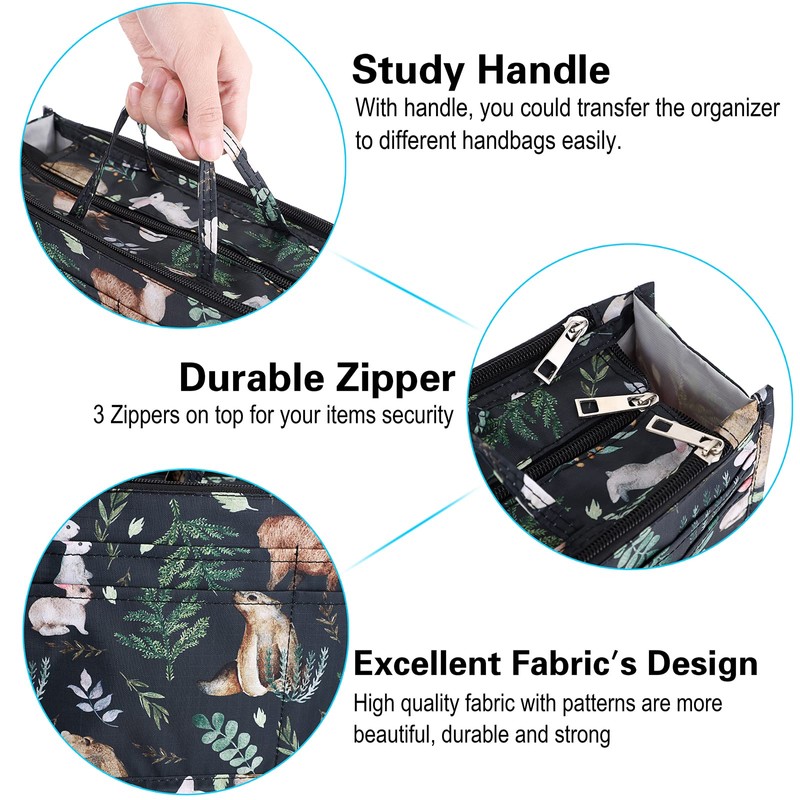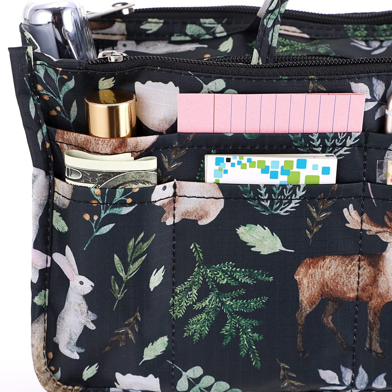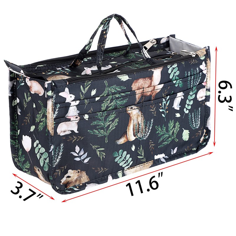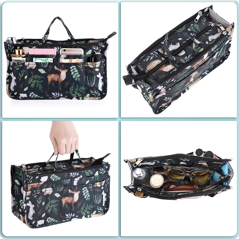 BTSKY Printing Handbag Organizers Inside Purse Insert - High Capacity 13 Pockets Bag Tote Organizer with Handle (Black Animal)