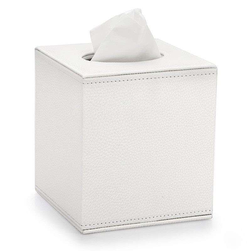 - Textured Tissue Box -- This square tissue box is nice for Klenex tissues and neednt remove the tissues from the original box. Soft pu leather material with textured pattern add a touch of sophistication. Stands out on your table as well