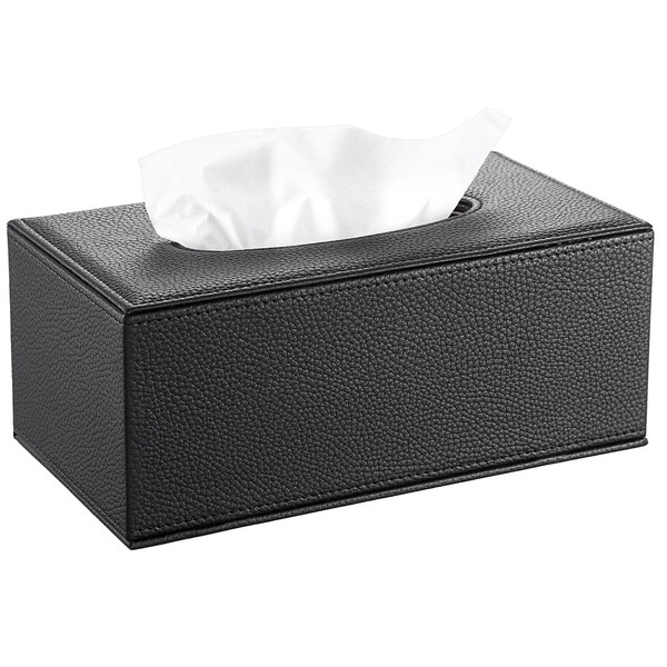 BTSKY PU Leather Rectangular Tissue Holder Box - Household/Office Tissue Box Cover, Textured Tissue Paper Box Case Napkin Holder, Black