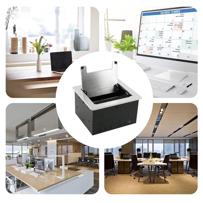 • Easy to install: you just need to cut out a rectangle of the appropriate size on the desk or floor, insert the socket into the cutout, and tighten the ring from the bottom of the table to quickly complete the installation.