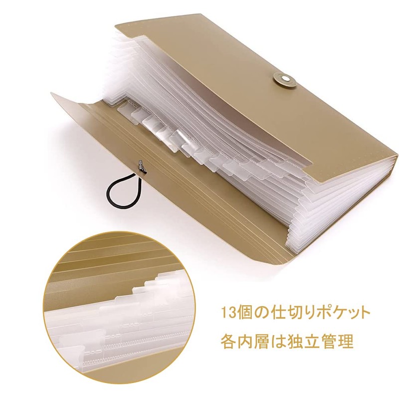 BTtime Document Receipt File, 13 Pockets, Accordion File, Classification File, Receipt, Passbook, Passport, Document Organizer, Multiple Storage, Multi-functional, Includes Division Labels (Kaki)