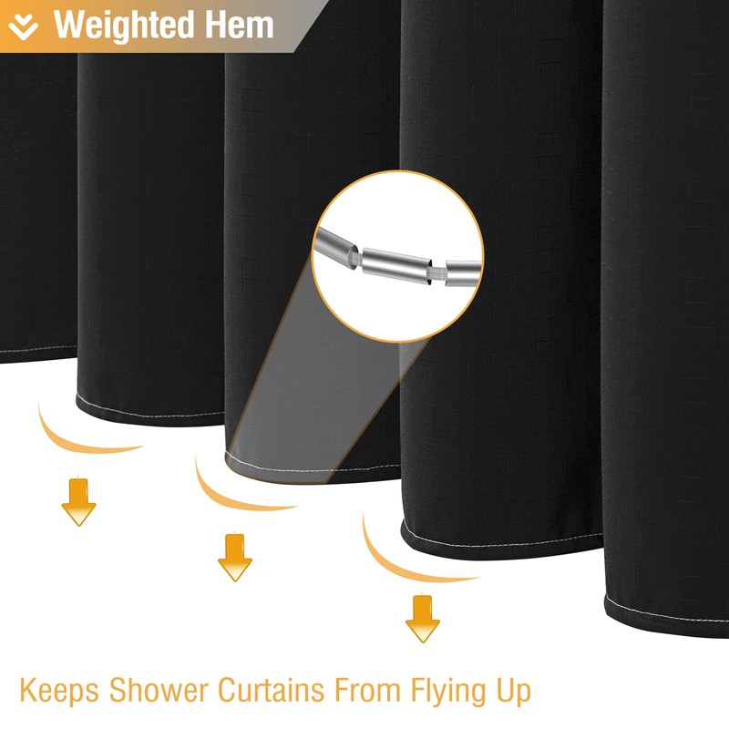 - đăProtect Privacy & Water Repellentă: High-density and heavy-weight woven fabric construction with weighted hem provide maximum protection for your privacy and prevent the curtain from billowing; There is a water-repellent coating on the surface, which can promote the formation of water droplets, causing water to roll off the surface quickly, keeps your bathroom dry and clean.
