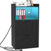 BTWDI 2 Drawer Lateral File Cabinet with Charging Station, Wood Filing Cabinet with Lock & LED Light, Large Storage Printer Stand for Home Office, Black