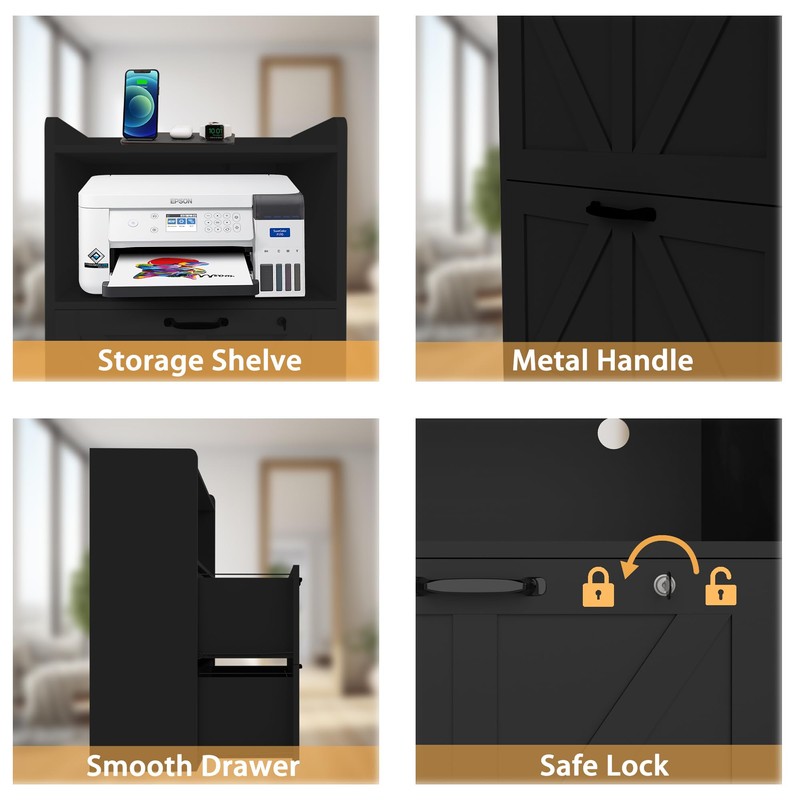 - 【Large storage cabinet】Dimensions: 24''L*15.6''W*38.4''H, with 2 large wooden drawers, 1 open storage shelf & 1 wooden desktop which weight capacity of 150 lbs. You can also use it as a printer stand to save space. The file cabinet with lock provides added privacy and security for your personal items.